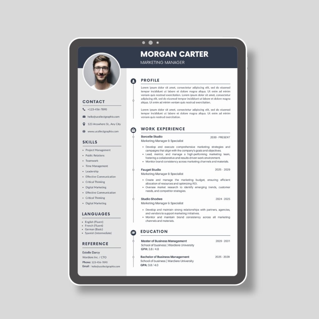 Professional Manager Resume Template | 1 & 2 Page Canva Editable CV | A4 & Letter Size | CV-003