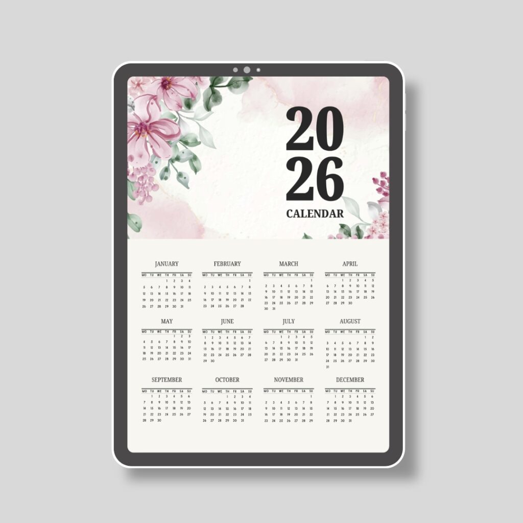 2026 Printable Calendar | Instant Download | Modern Home Office Decor | CAL2026-004-01