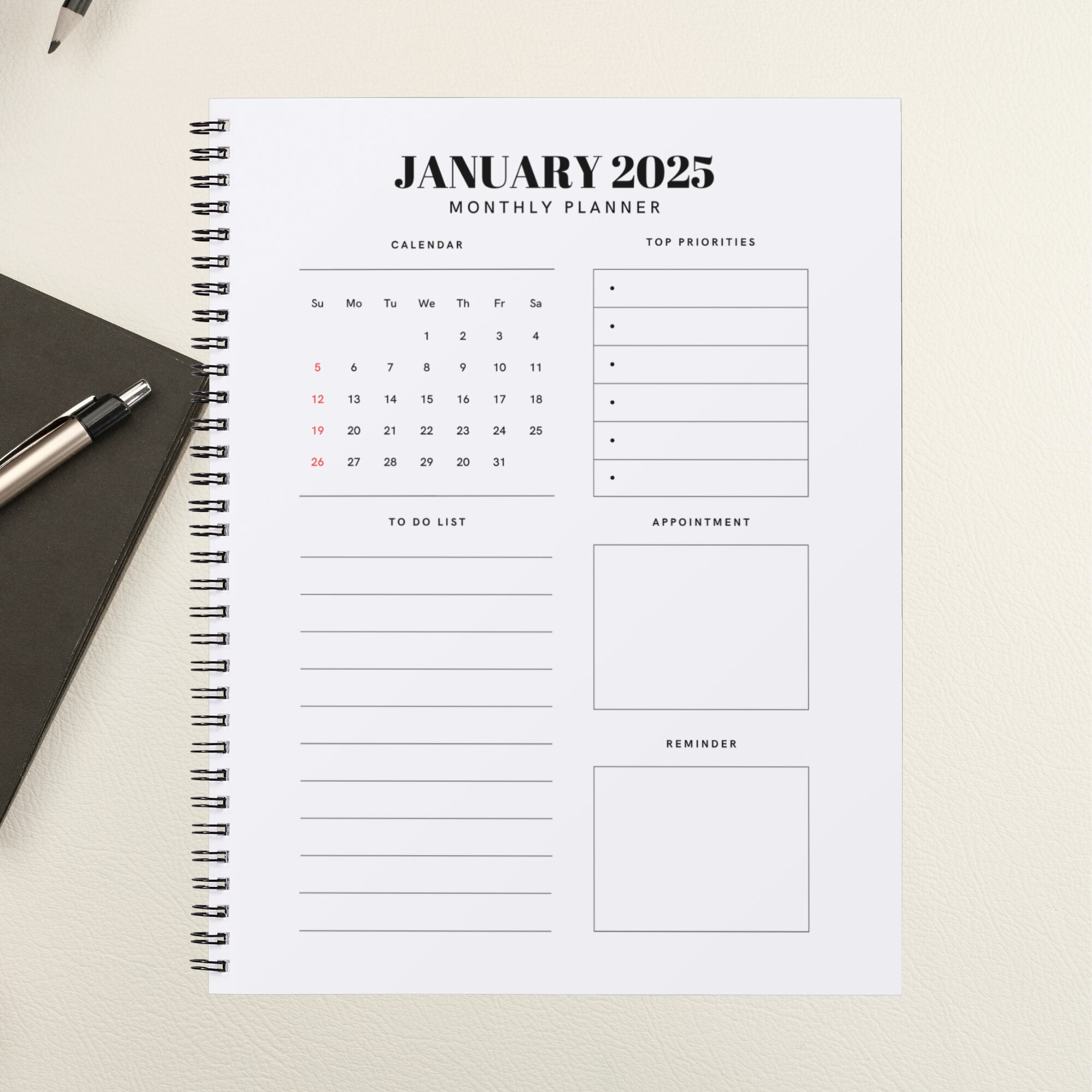 Stay organized and inspired all year long with this Printable 2025 Monthly Planner — the perfect tool to manage your time, plan ahead, and achieve your goals with clarity and focus. Designed for productivity and simplicity, this planner helps you balance work, home, and personal life — all in one place!